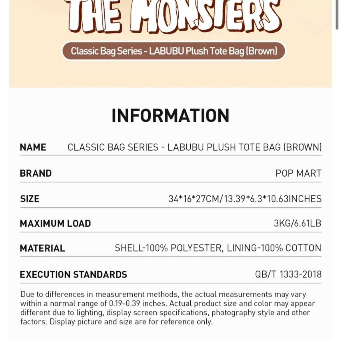POP MART Classic Bag Series - LABUBU Plush Tote Bag (Brown)