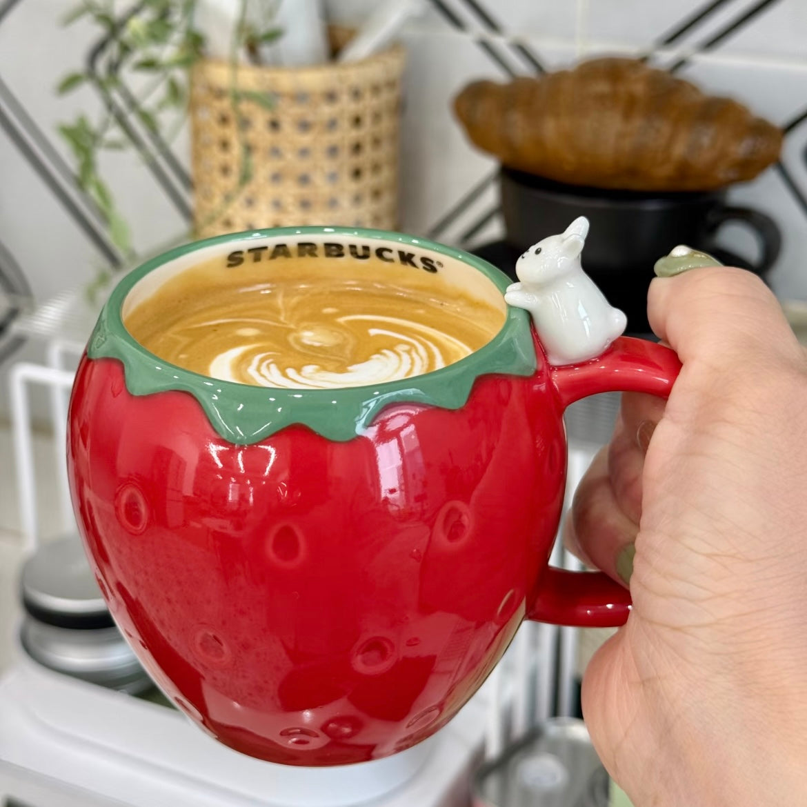 Adorable design: strawberry-shaped body with a tiny bunny peeking from the handle. Perfect for coffee, tea, or display in your collection!