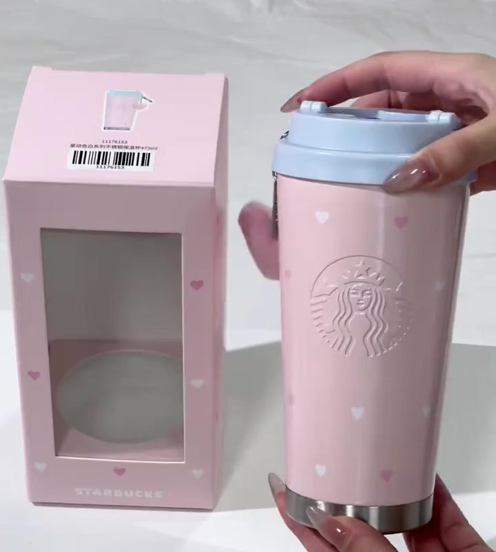 Starbucks China Pink 16oz Stainless Steel Tumbler Cup Sleeve Strap Heart Charm (Ready to ship)