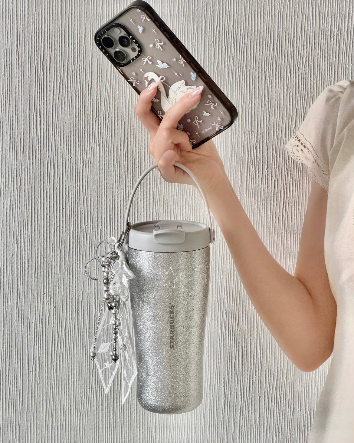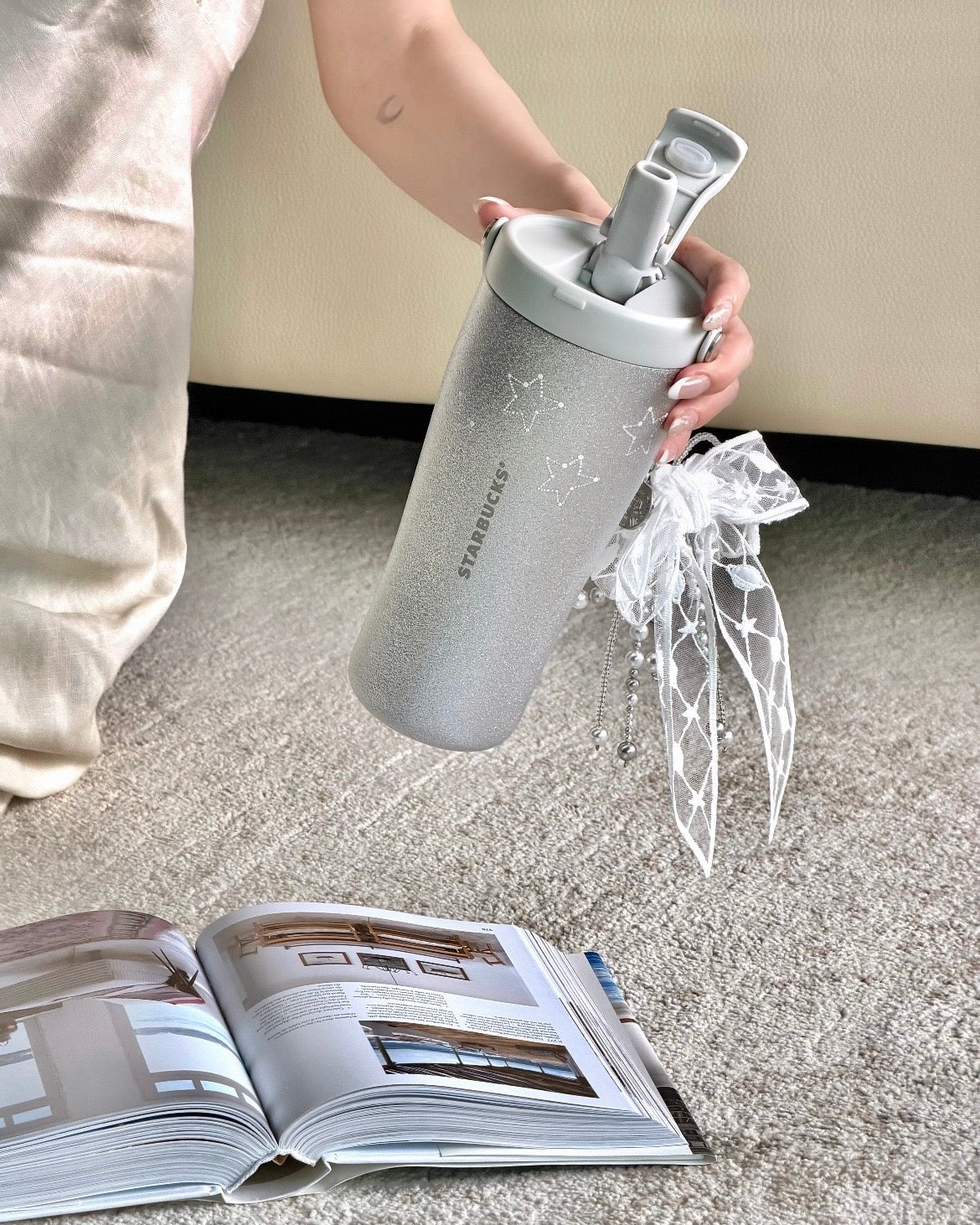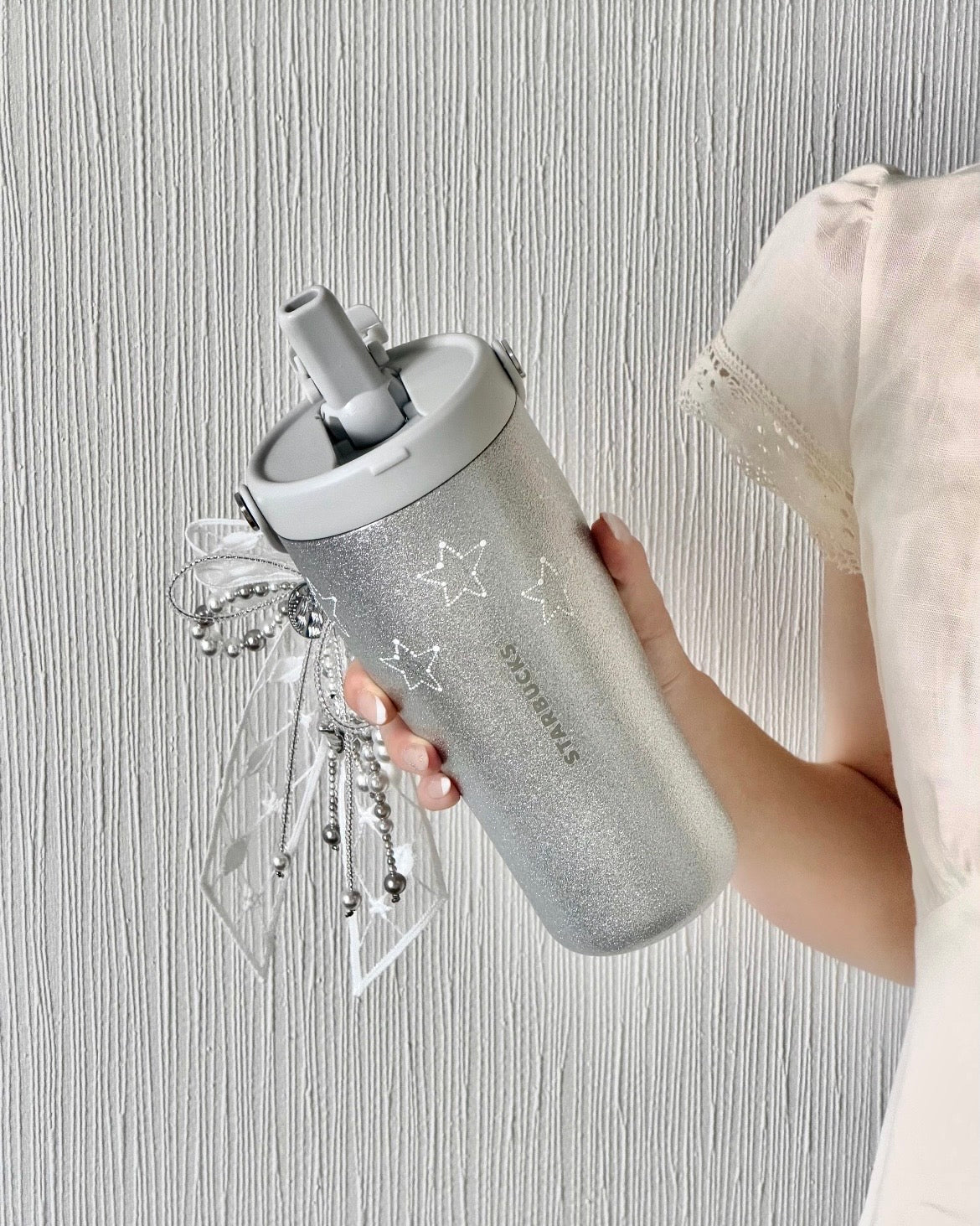 Starbucks China Violet Night Galaxy 21oz Fine Glitter Lace Silver Handle Stainless Steel Cup