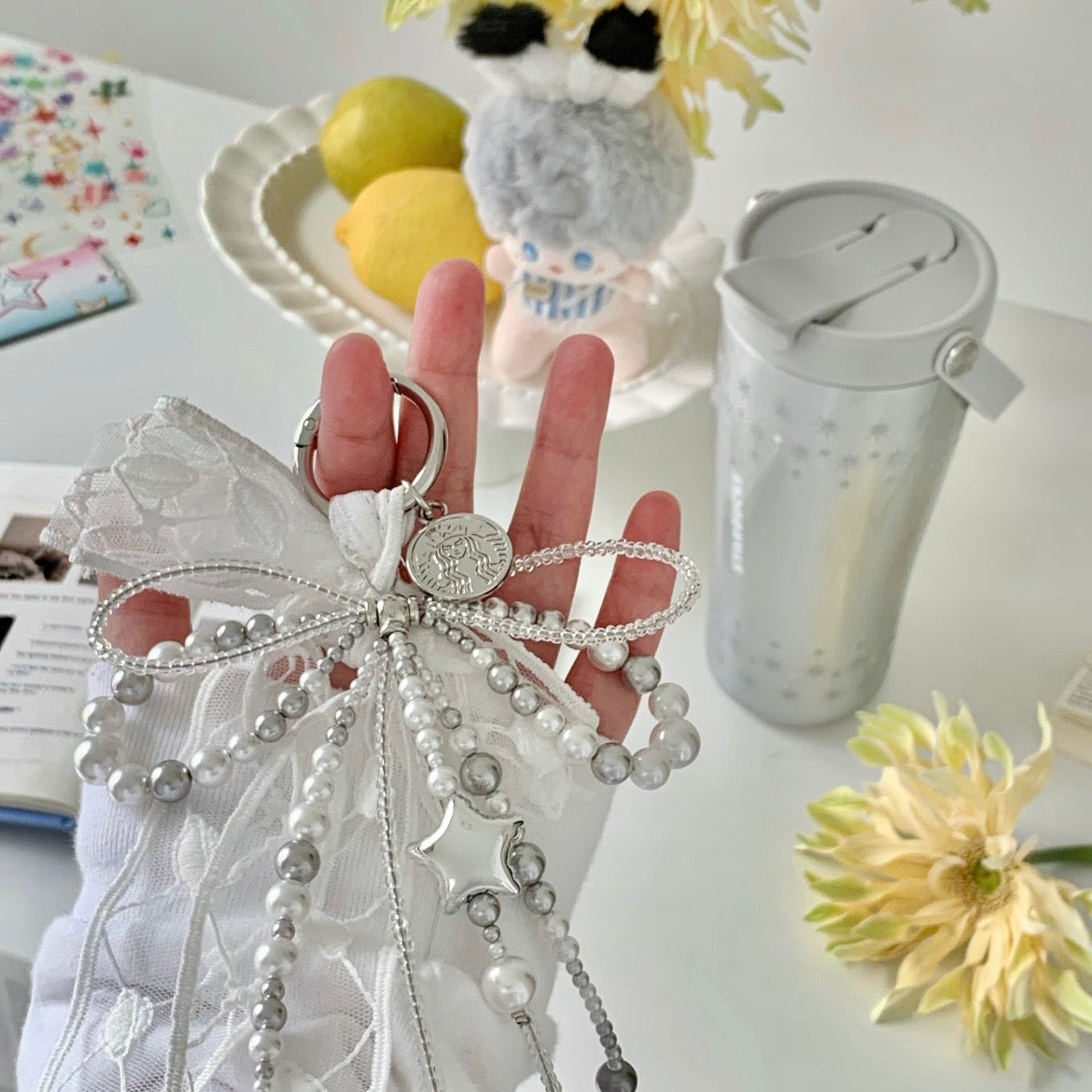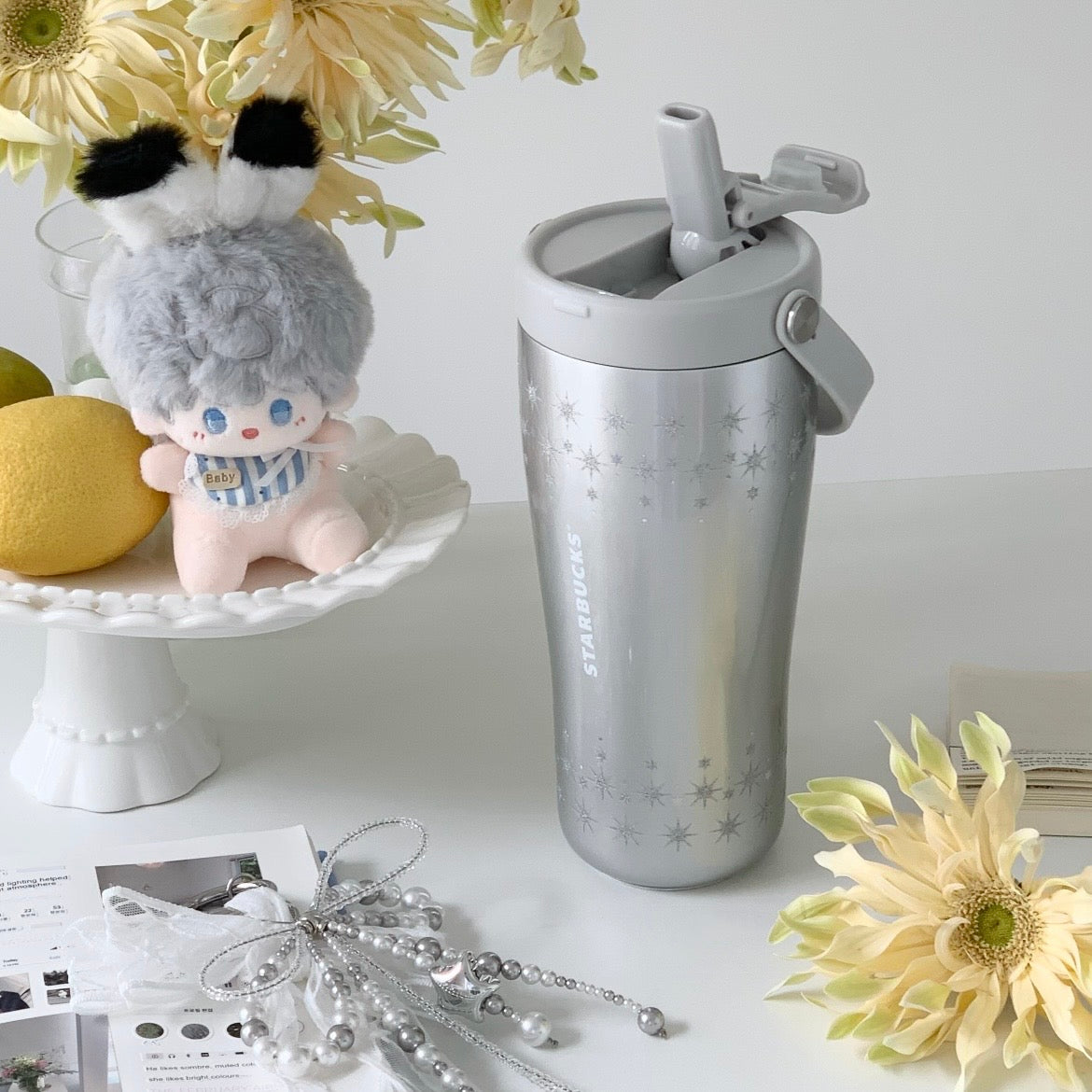 Starbucks China Violet Night Galaxy 21oz Sparkling Lace Silver Handle Stainless Steel Cup