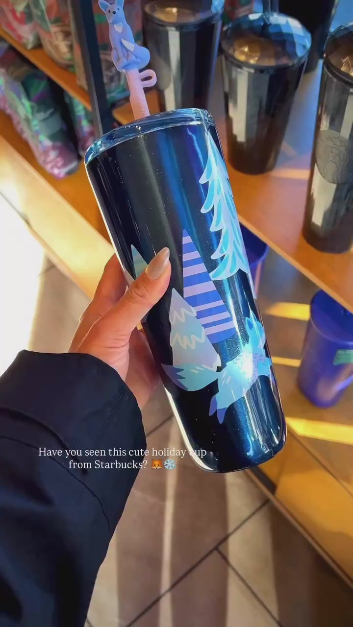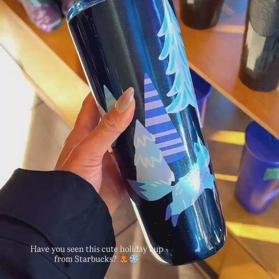 Starbucks Christmas Glittery Blue Fox Stainless Steel Cold Cup Tumbler 24oz (READY TO SHIP)