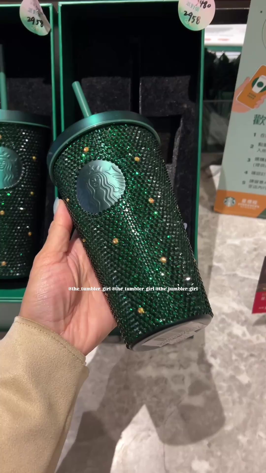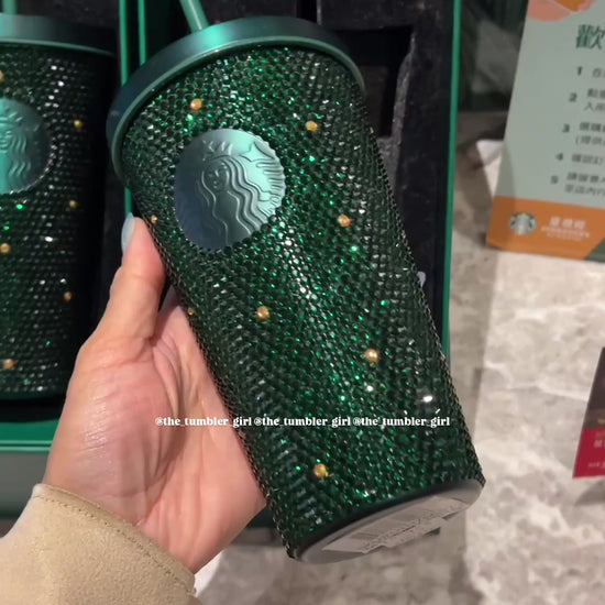 Starbucks Taiwan Forest Green Bling Rhinestone Stainless Steel Tumbler 17.5oz (ships late March)