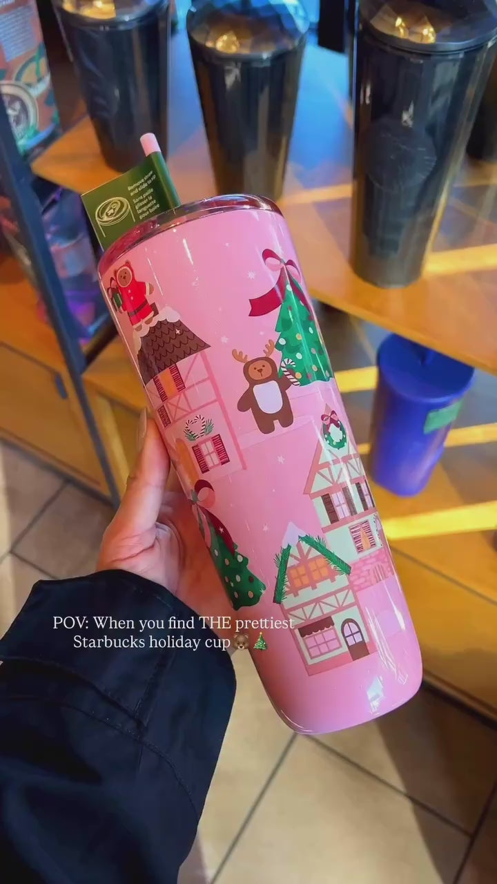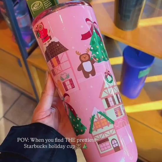 Starbucks Christmas Pink Bear Tree Stainless Steel Cold Cup Tumbler With Straw (READY TO SHIP)